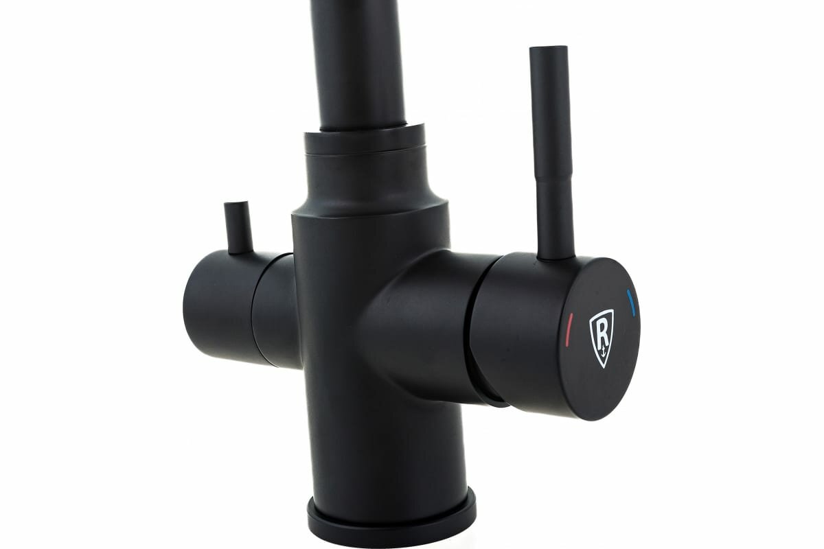 Смеситель для кухни /кухонной мойки с фильтром для питьевой воды RUSH (MS9035-33Black), поворотный излив (гусак, носик), латунь, черный матовый