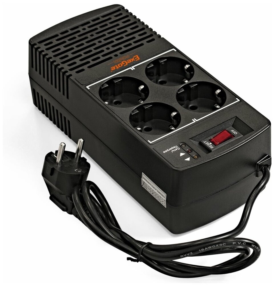 Exegate EP285941RUS Стабилизатор ExeGate Power AD5000-500 (500VA/300W, диапазон 150...280В, 4 евророзетки)