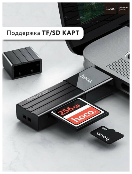 Картридер HOCO HB20 Mindful, USB to TF/SD/micro SD, Черный, (USB 3:0 - 5 Gb)