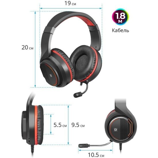Игровые наушники с микрофоном Defender Apex Pro объемный звук 7.1, кабель 1.8м