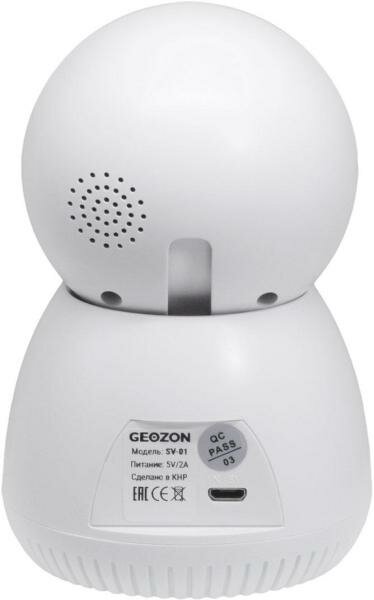 Камера видеонаблюдения Умная камера 360 GEOZON SV-01/Wi-Fi/micro-SD до 64GB/AVCHD 720p/Датчик движения/Ночная съёмка/AC 100-250V; DC 5V/1.6A/Установка внутри помещений/white