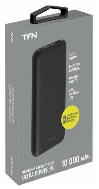 Powerbank аккумулятор Внешний аккумулятор TFN Ultra Power PD 10 000 mAh Black (PB-222-BK)