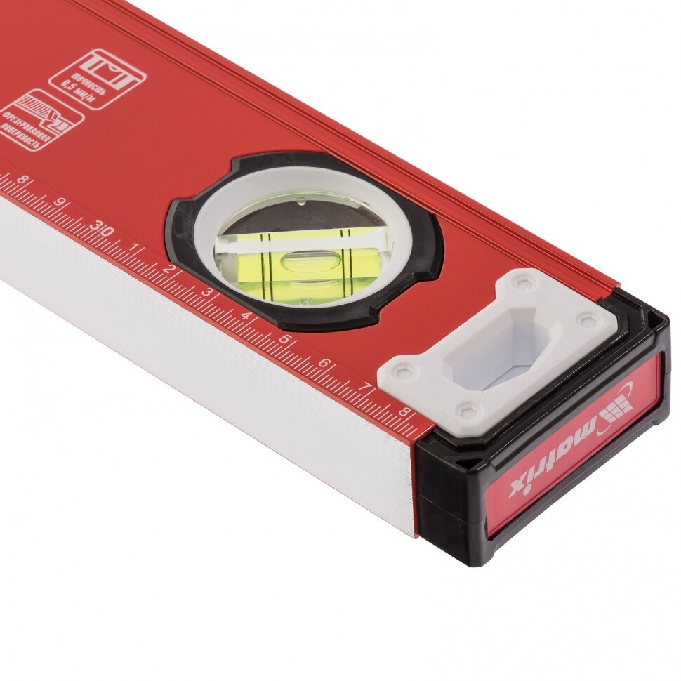 Лучшие цены. Алюминиевый фрезерованный уровень Matrix 34200 длиной 400 мм, с 3 глазками, рассчитан на определение отклонений от горизонтальной и вертикальной поверхностей и угла 45 градусов. Строительный уровень станет незаменимым помощником для мастеров, т.к. обеспечивает высокую точность работы, а следовательно, и качественный результат. Примечание: для определения отклонения вертикали 90 градусов необходимо использовать пузырьковую ампулу только в верхнем положении уровня. Магазины в вашем городе.