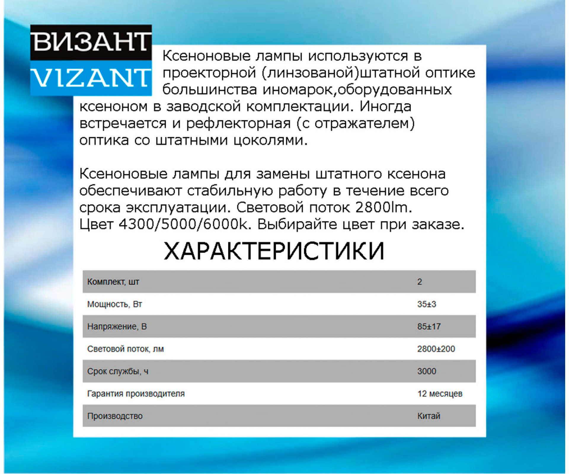 Автолампы Лампа автомобильная ксеноновая Vizant 4HB3 HB3 4300K P20d 2 шт.