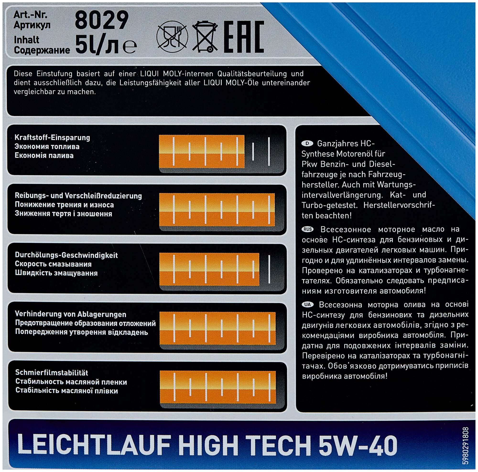 LIQUI MOLY 8029 5W-40 SN/CF LEICHTLAUF HIGH TECH 5л ( НС-синтетик.мотор.масло) 8 214 ₽ Подробнее