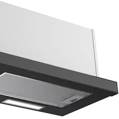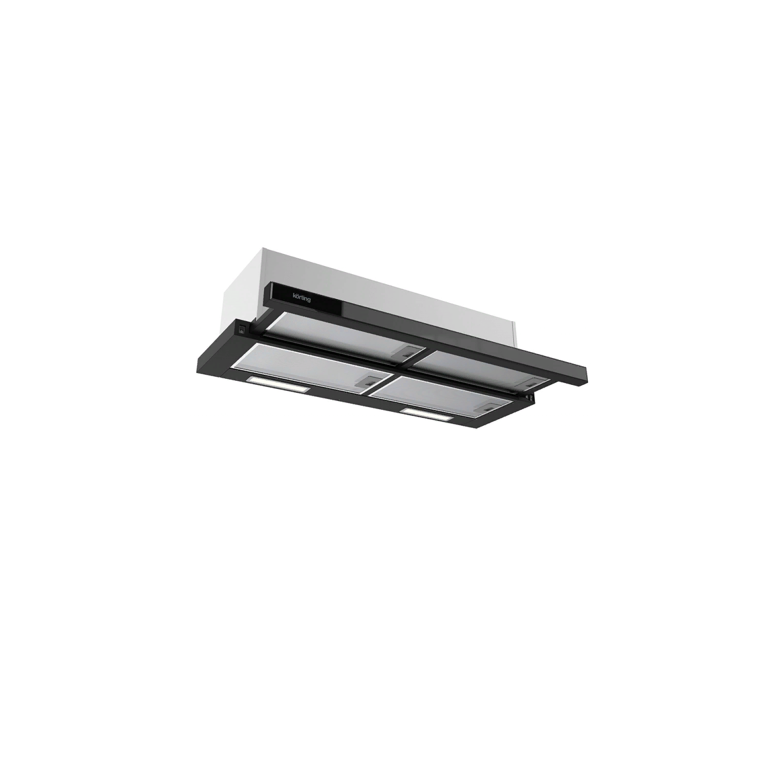 Встраиваемые вытяжки Korting/ Встраиваемая с выдвижным экраном, ширина 90 см, 3 режима, механическое (клавишное) управление, 800 м3/ч., алюминиевые жировые фильтры, LED освещениe - 2 лампы, ур.шума 59дб, панель - черное стекло (обработка - фасет)