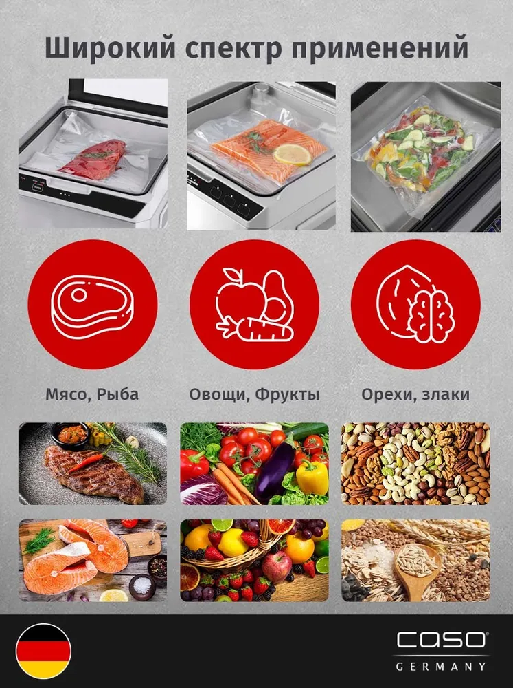 Вакуумный упаковщик камерный (вакууматор) CASO VacuChef 77 / 77 л/мин / Импульсный режим / Адаптер для уплотнения контейнера