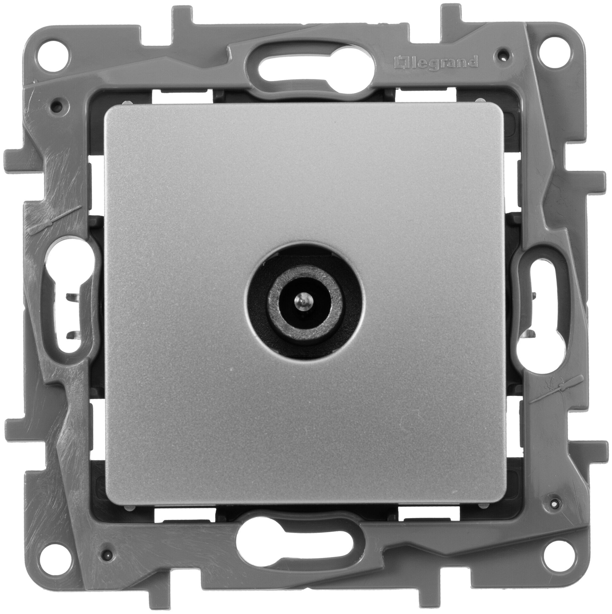 Лучшие цены. Проходная ТВ-розетка Legrand Etika, цвет алюминий, является составной частью схемы последовательного подключения ""шлейф"" (от одного к другому) ТВ-приёмников. Используется по длине линии. В конце «шлейфа» устанавливается оконечная розетка. Проходная розетка в качестве одиночной розетки не применяется. Особенности: - Механизм изготовлен из металлического сплава и защищает соединение от электромагнитных помех. Магазины в вашем городе.