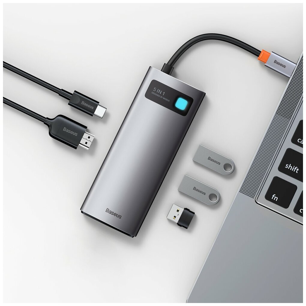 Хаб Baseus Metal Gleam Series 5-in-1 Multifunctional Type-C HUB Docking Station Серый 30Hz Version (WKWG020013)