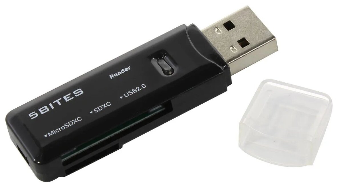 Карт-ридер USB2.0, SD, microSD, TF, SDHC, SDXC, черный, 5bites RE2-100BK