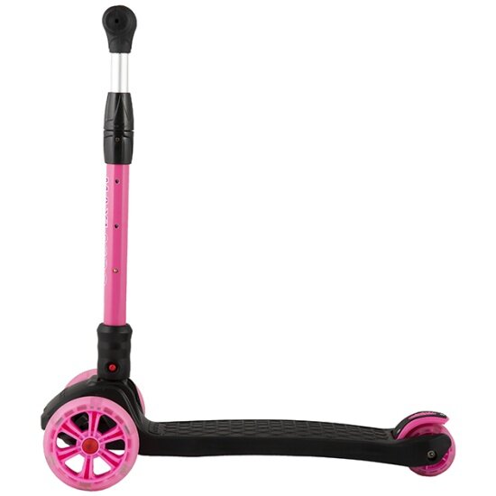 Самокат Трехколесный Складной, со Светящимися Колесами, Черный с Розовым - MSC-J072001D