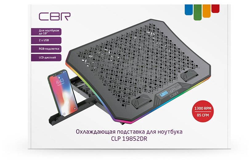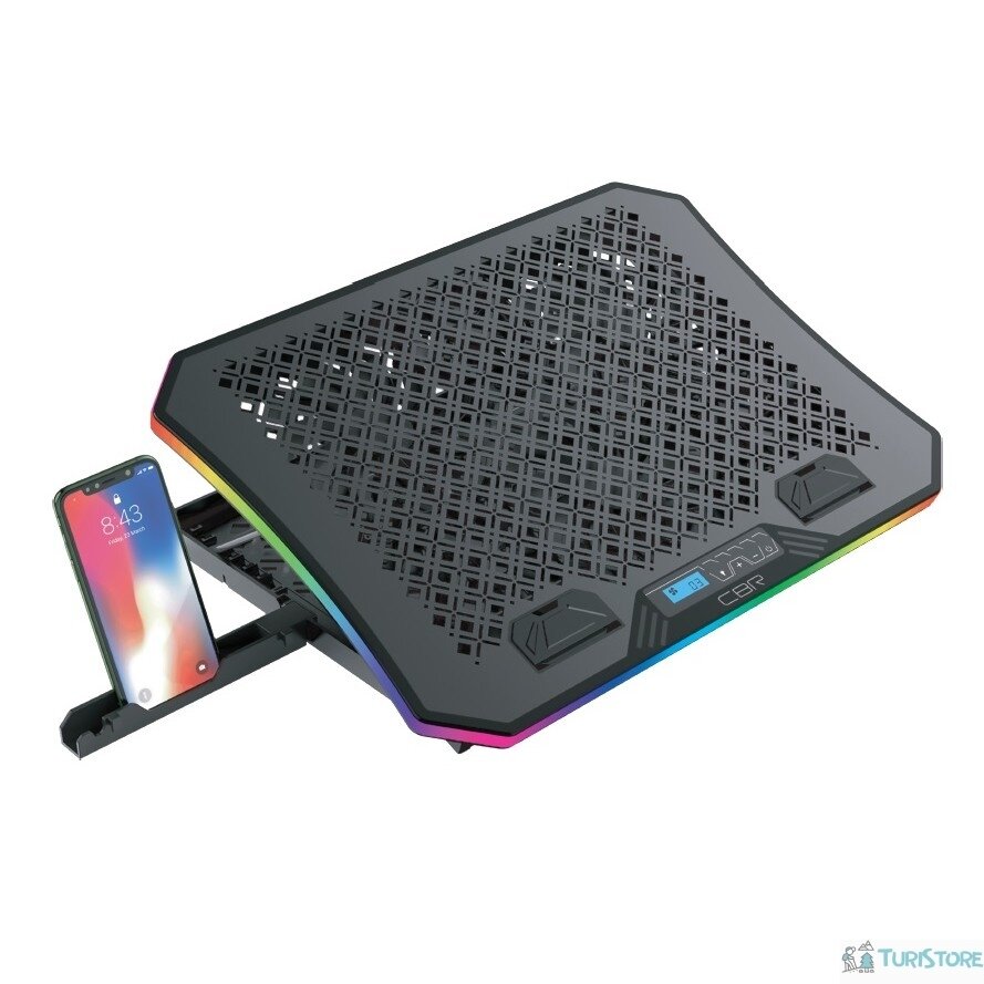 CBR CLP 19852DR, Подставка для ноутбука до 19, 415x300x33 мм, с охлаждением, 2xUSB, вентиляторы 3х110 мм, 85 CFM, RGB-подсветка, LCD-дисплей, держател