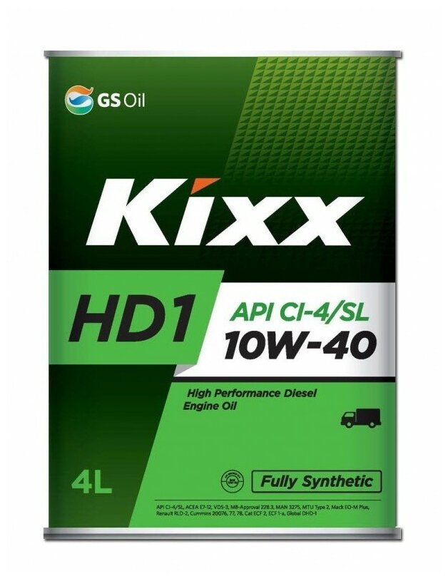 Масло моторное Kixx HD1 10w-40 API CI-4/SL; ACEA E7-12; MB 228.3; VOLVO VDS-3; MAN 3275; MTU Type 2; Mack EO-M Plus; Renault RLD-2; Cummins 20078, Cummins 20076, 77; Cat. ECF-1-a/ECF-2; Global DHD-1 - 4л. L206144TE1