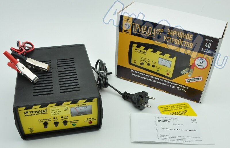 Профессиональное мощное импульсное зарядное устройство "Триада-40 6/12 А" (в коробке). 2 режима работы: 6/12 А Опция зима/лето. Стрелочный индикатор, плавная регулировка тока. Индикация окончания заряда, переполюсовки. Вес нетто 720 г.