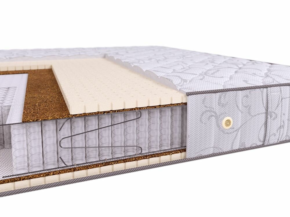 Лучшие цены. Матрас Hit Middle S2400 средней жесткости выполнен из натуральных материалов: латексированной кокосовой койры и натурального латекса на пружинном блоке "Микропокет" (1100 пр/м2) с усилением по периметру Z пружинами, который равномерно распределяется нагрузку тела, создает правильную поддержку позвоночника во время сна и более выраженный ортопедический эффект. Матрас выполнен методом пристрелки без применения клея. Чехол матраса выполнен из объемной двойной жаккардовой ткани. Магазины в вашем городе.