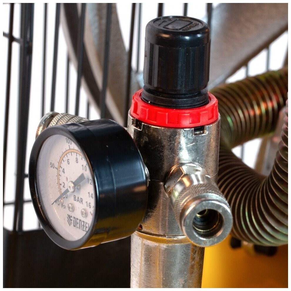 Лучшие цены. Мощный 5,5 кВт компрессор Denzel BCI5500-T/200 применяется на стройке, в автосервисе или на небольших предприятиях. Высокая производительность на входе 850 л/мин позволяет подключать пневмоинструмент с большим расходом воздуха, например: пневмошлифовальную машинку, пневмолопату, пневмомолоток, пневмодрель. Основные характеристики Мощность 5.5 кВт Цилиндры 2 Ступени 1 Производительность 850 л/мин Максимальное давление 10 бар Объем ресивера 200 л Тип компрессора поршневой ременный Тип смазки масляный. Магазины в вашем городе.