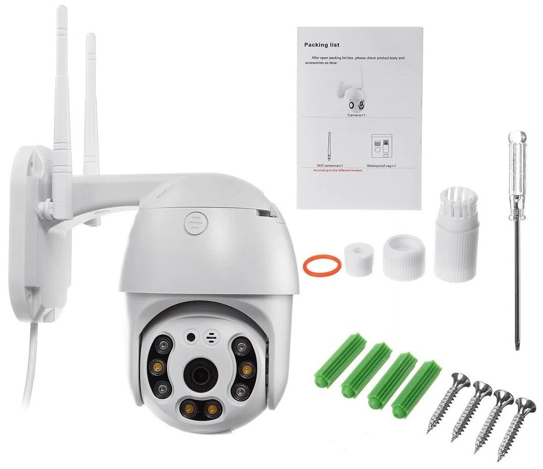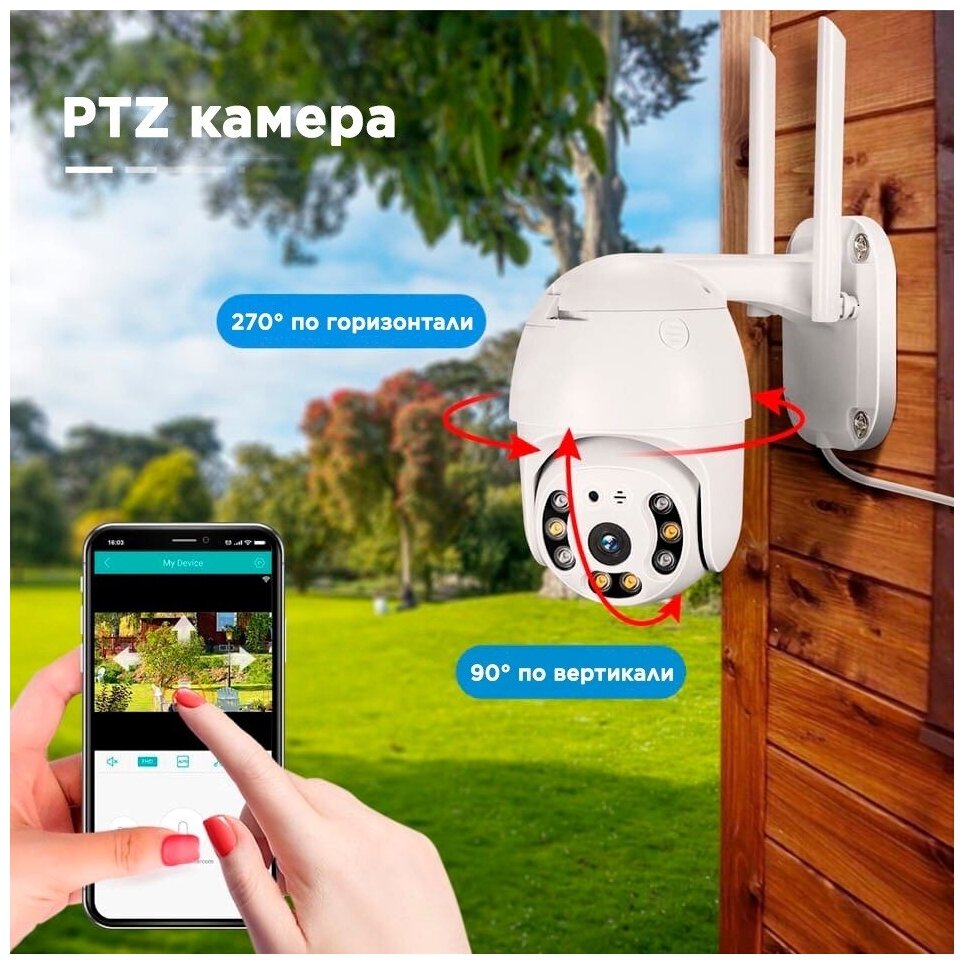 Лучшие цены. Уличная беспроводная камера наблюдения WiFi smart camera 1080P способна не только взять под контроль дом и двор, но и защитить его. Обзор камеры составляет 270 градусов, по вертикали камера способна изменять положение на 90 градусов. Отличительной особенность этой модели является и то, что она одинаково хорошо работает как днем, так и ночью. При этом, ночная съемка производится практически незаметно, благодаря инфракрасной подсветке. Даже в полной темноте можно вести съемку на расстоянии около 50 метров. Магазины в вашем городе.