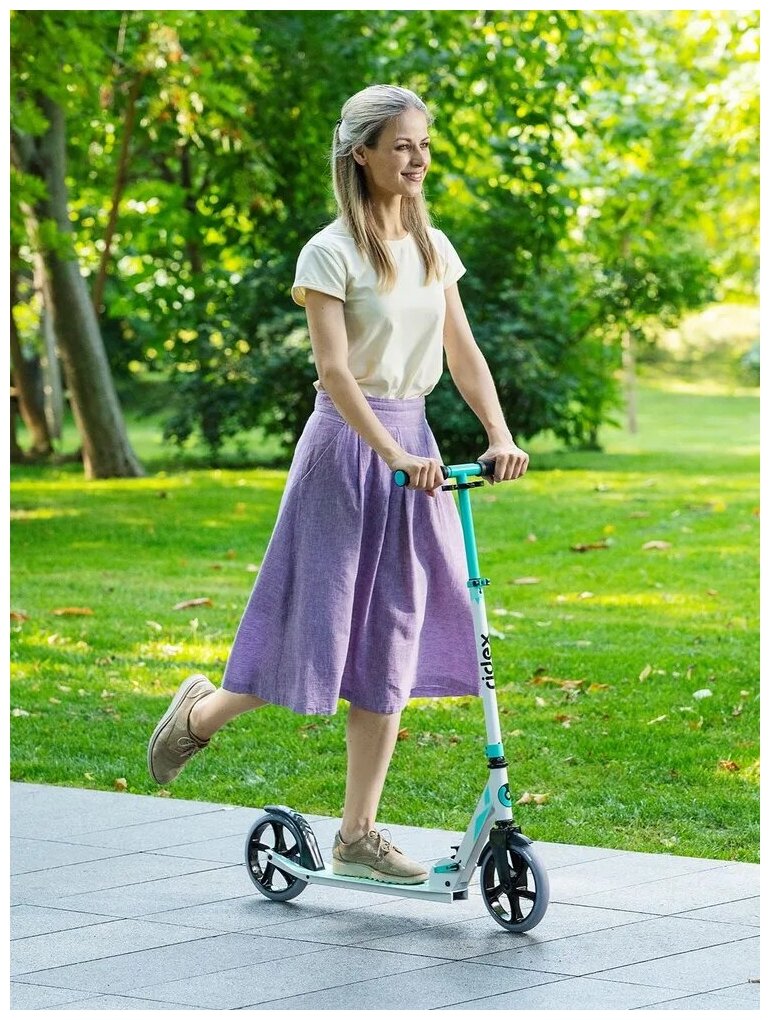 Лучшие цены. Одно из лучших решений в сфере городских самокатов. Удивительная модель в линейке Ridex! Самокат состоит из легкого и высокопрочного алюминиевого сплава. Заниженная дека позволяет передвигаться по городу в расслабленном режиме, отталкиваясь лишь носком. Складной механизм удобно расположен между декой и рулём, а фирменный ремень в комплекте повышает уровень комфортного перемещения самоката в сложенном виде. Магазины в вашем городе.