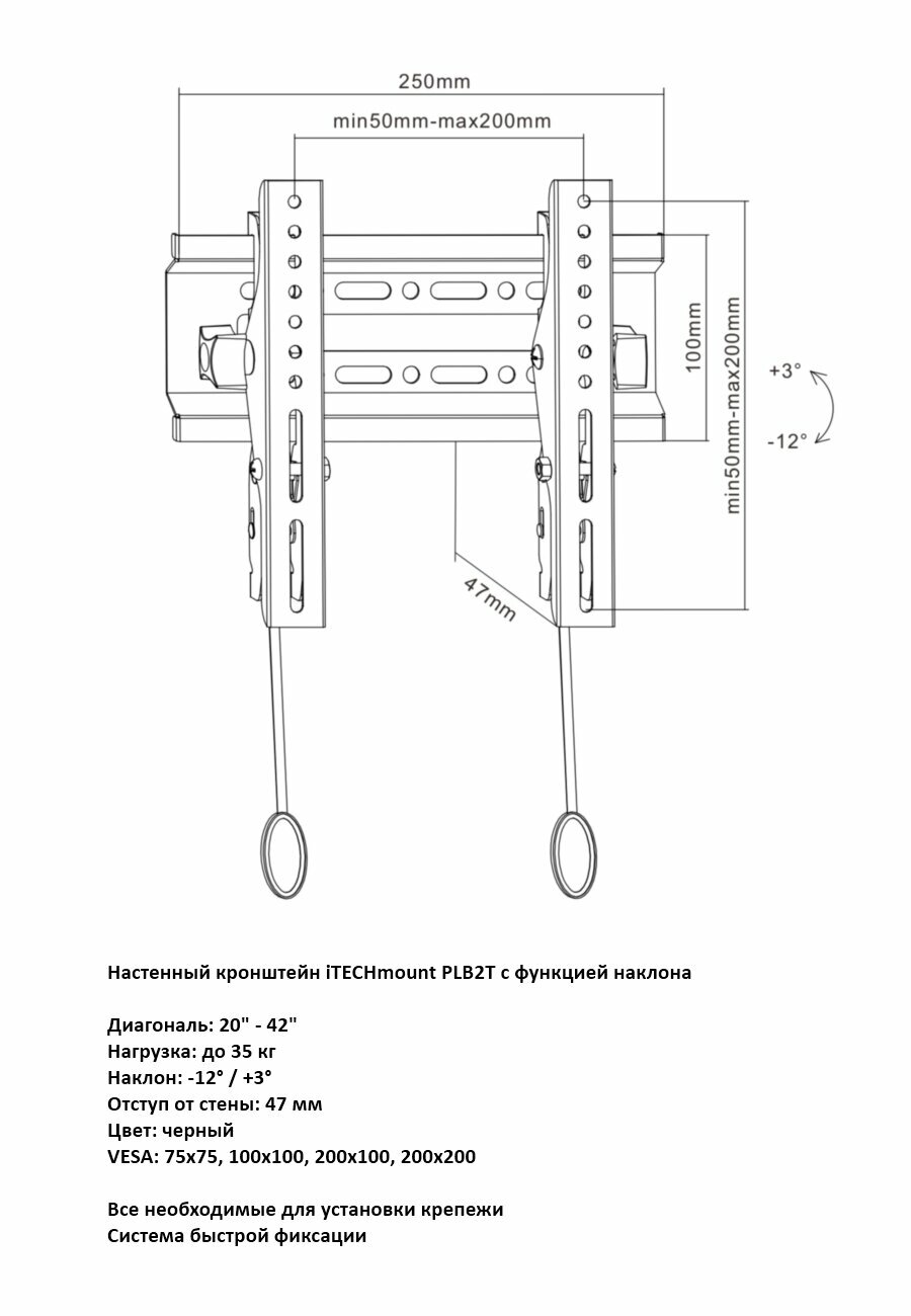 Настенный наклонный кронштейн для установки телевизоров и мониторов с диагональю от 20 до 42 дюймов iTECHmount PLB2T
