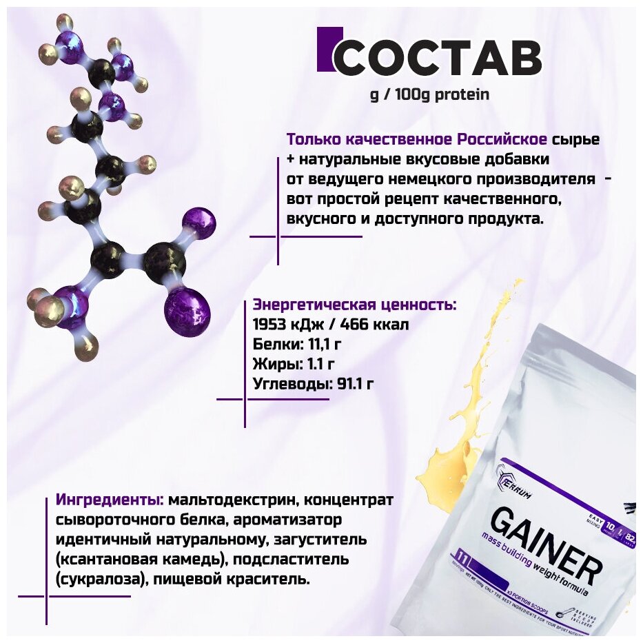 Лучшие цены. Gainer от FErrum Nutrition - это белково-углеводная смесь, созданная для эффективного и быстрого массонабора. Его основная задача перекрыть дефицит калорийности в питании, который может возникнуть в виду увеличенных физических нагрузок. Благодаря увеличению гликогена в мышцах организм получает достаточное количество энергии и строительного материала для роста. Они собраны в специальной консистенции, включая в себя максимум, что может дать обычная пища. Магазины в вашем городе.