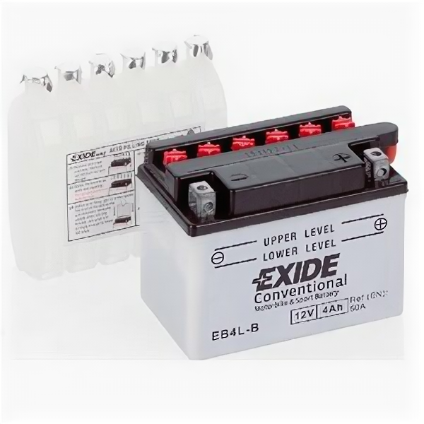 Лучшие цены. Аккумулятор для мотоцикла, квадроцикла, скутера Exide EB4L-B (YB4L-B, YTX4L-BS). Габариты 120x70x92. Производство Испания. Гарантия 12 месяцев. Магазины в вашем городе.