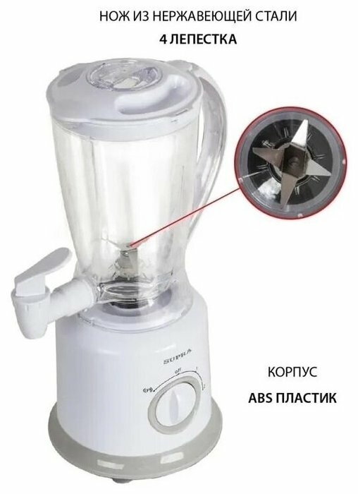 Блендер стационарный Supra HBS-9967 500Вт белый HBS-9967 .
