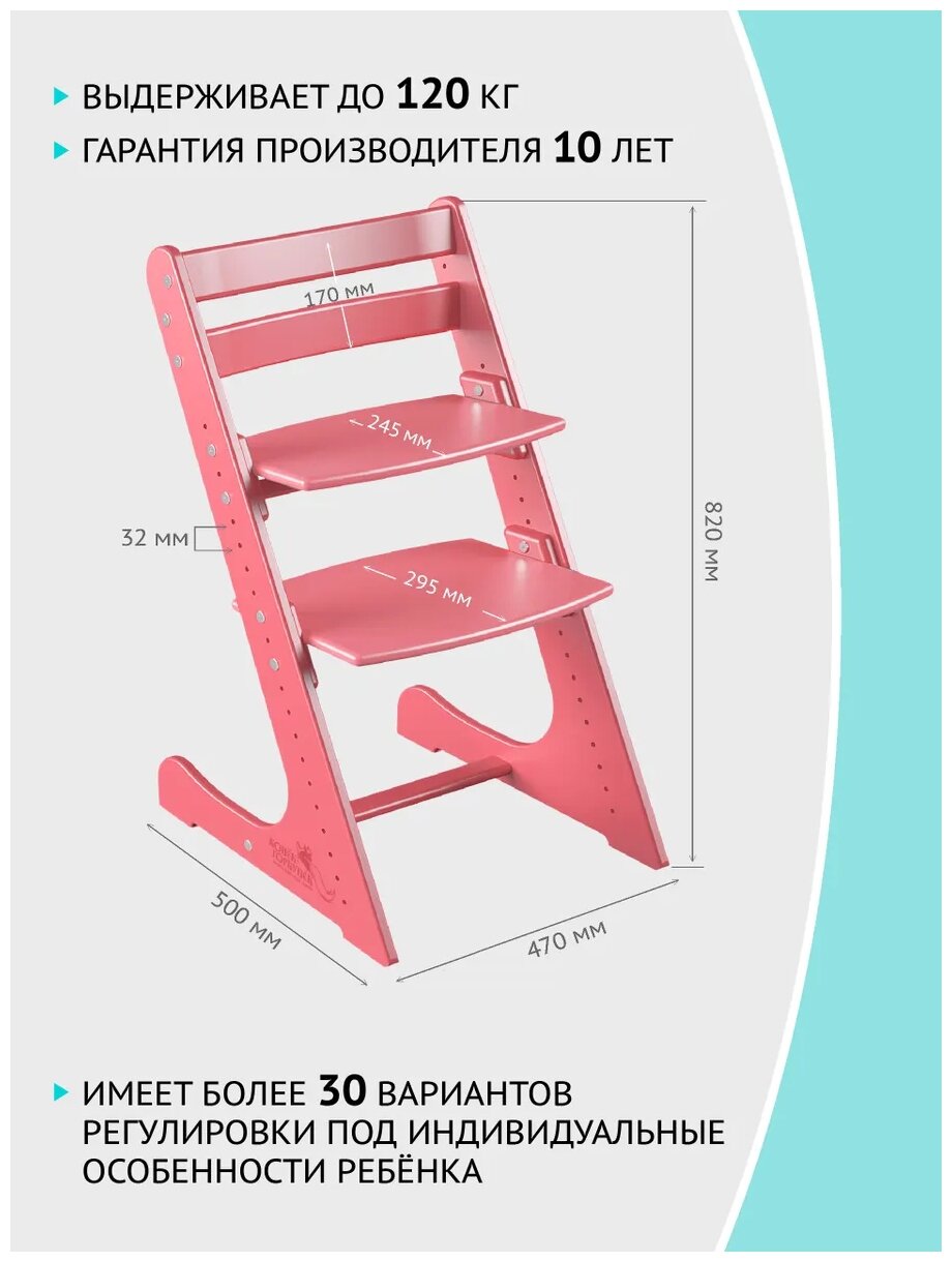 Растущий стул для детей, детский деревянный стульчик для школьника Конек Горбунек Комфорт, цвет Коралловый