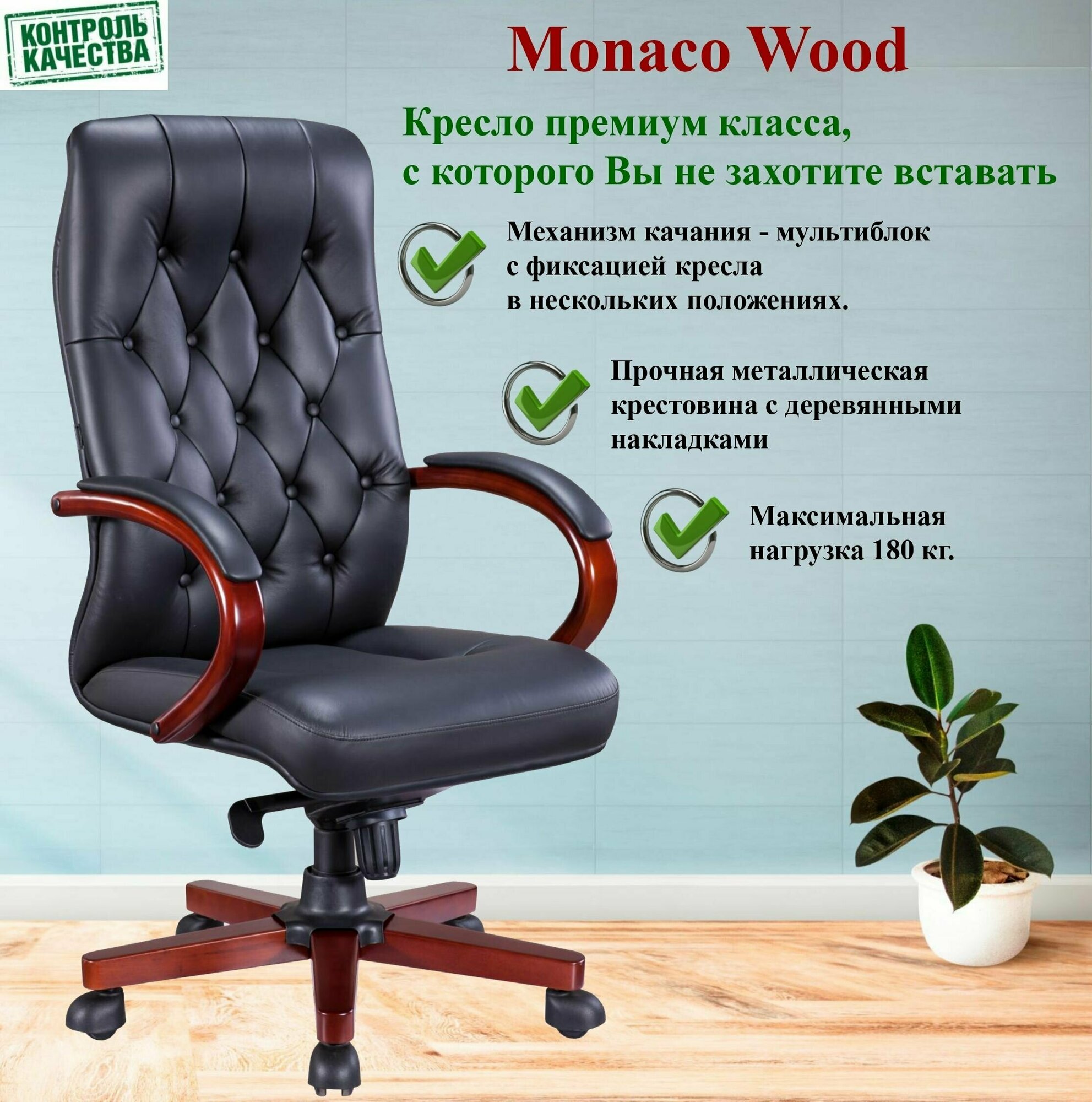 Офисное кресло руководителя Everprof Monaco Wood кожа черный