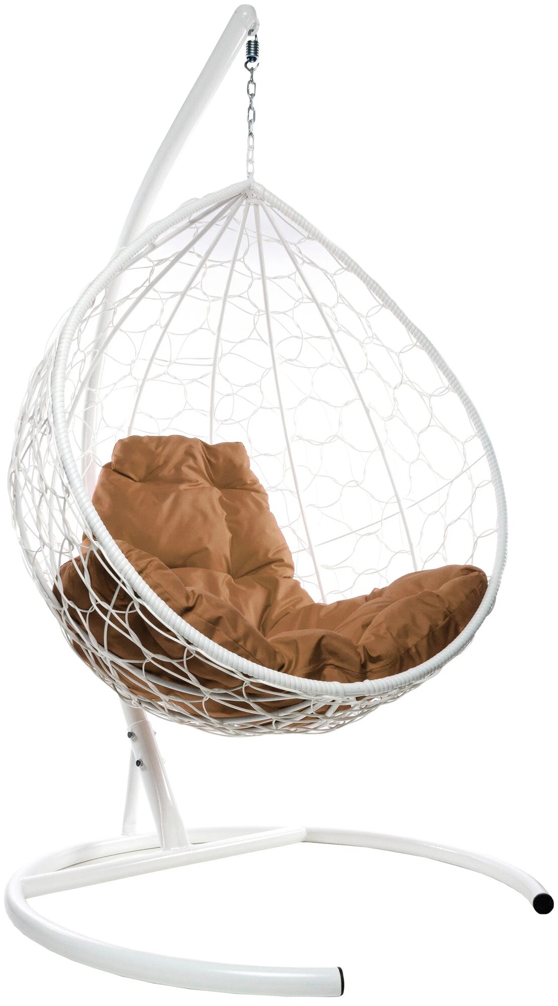 Подвесное кресло капля ротанг белое (без стойки), коричневая подушка