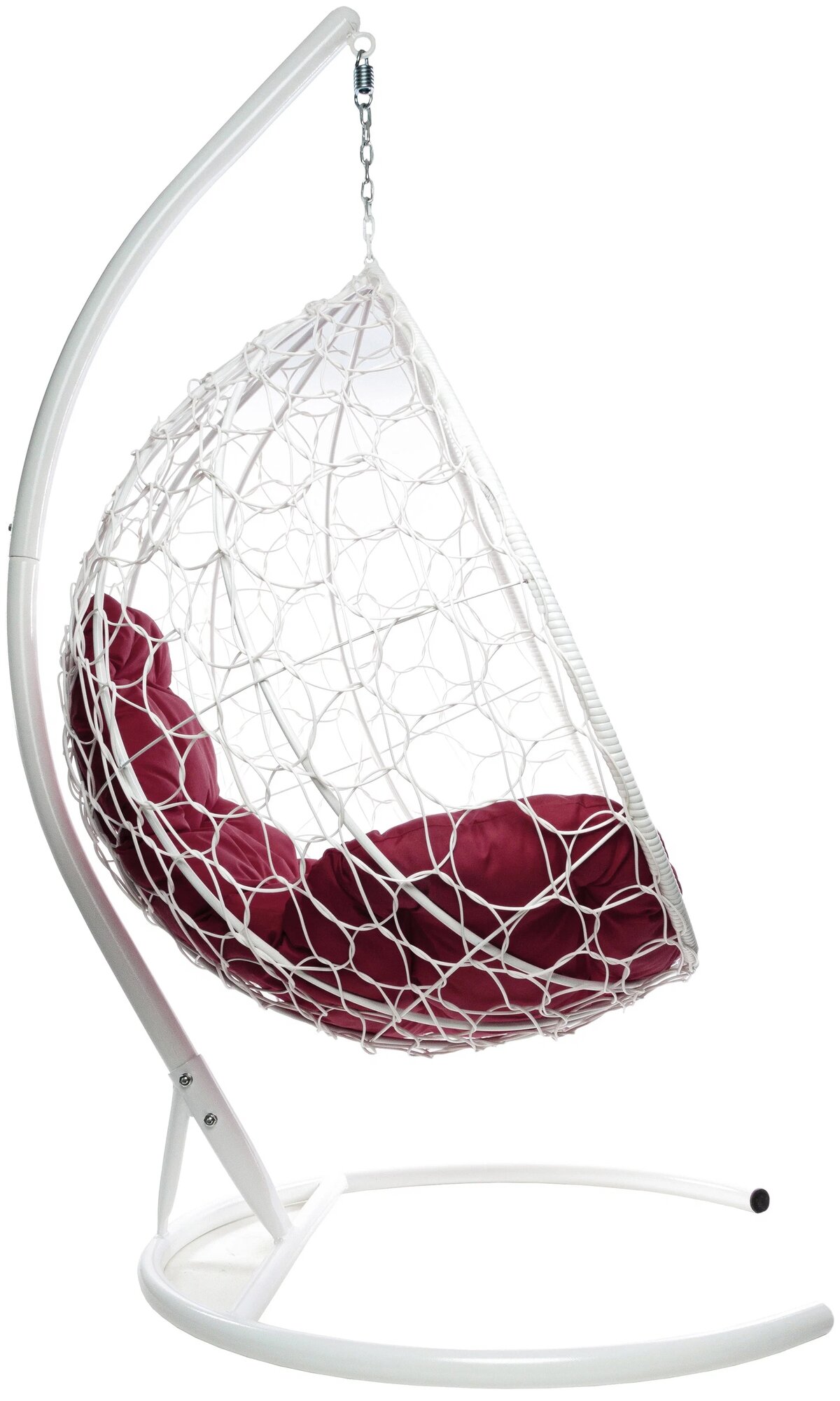 Садовая качель Подвесное кресло m-group капля ротанг белое, бордовая подушка