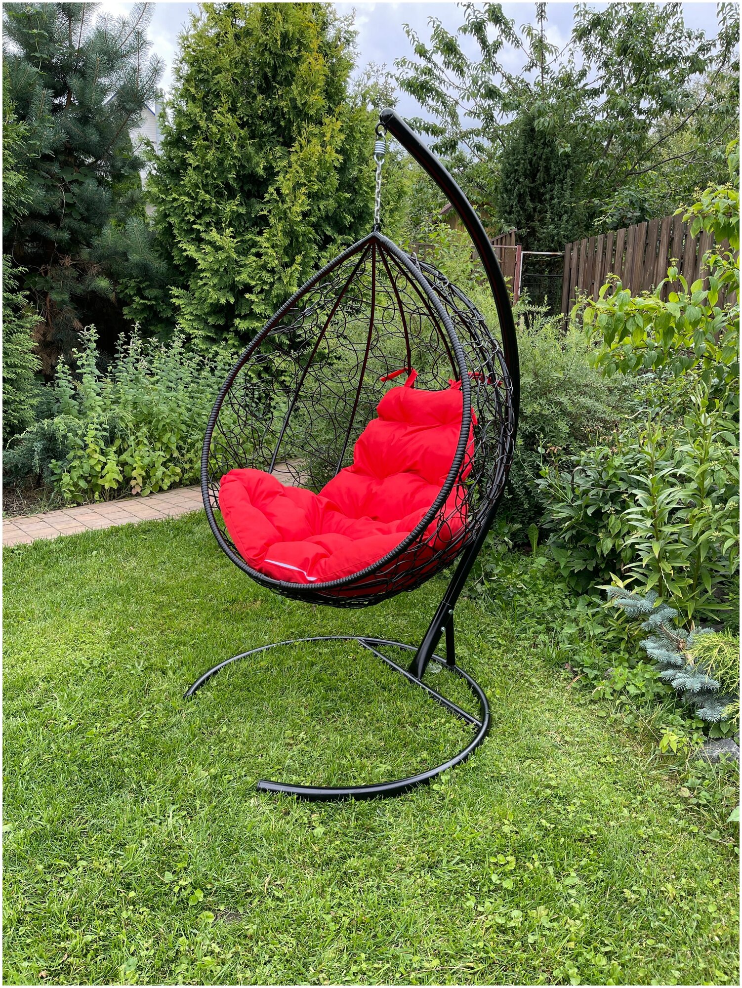 ООО Макс Мастер Подвесное кресло капля с ротангом чёрное, красная подушка 11020406