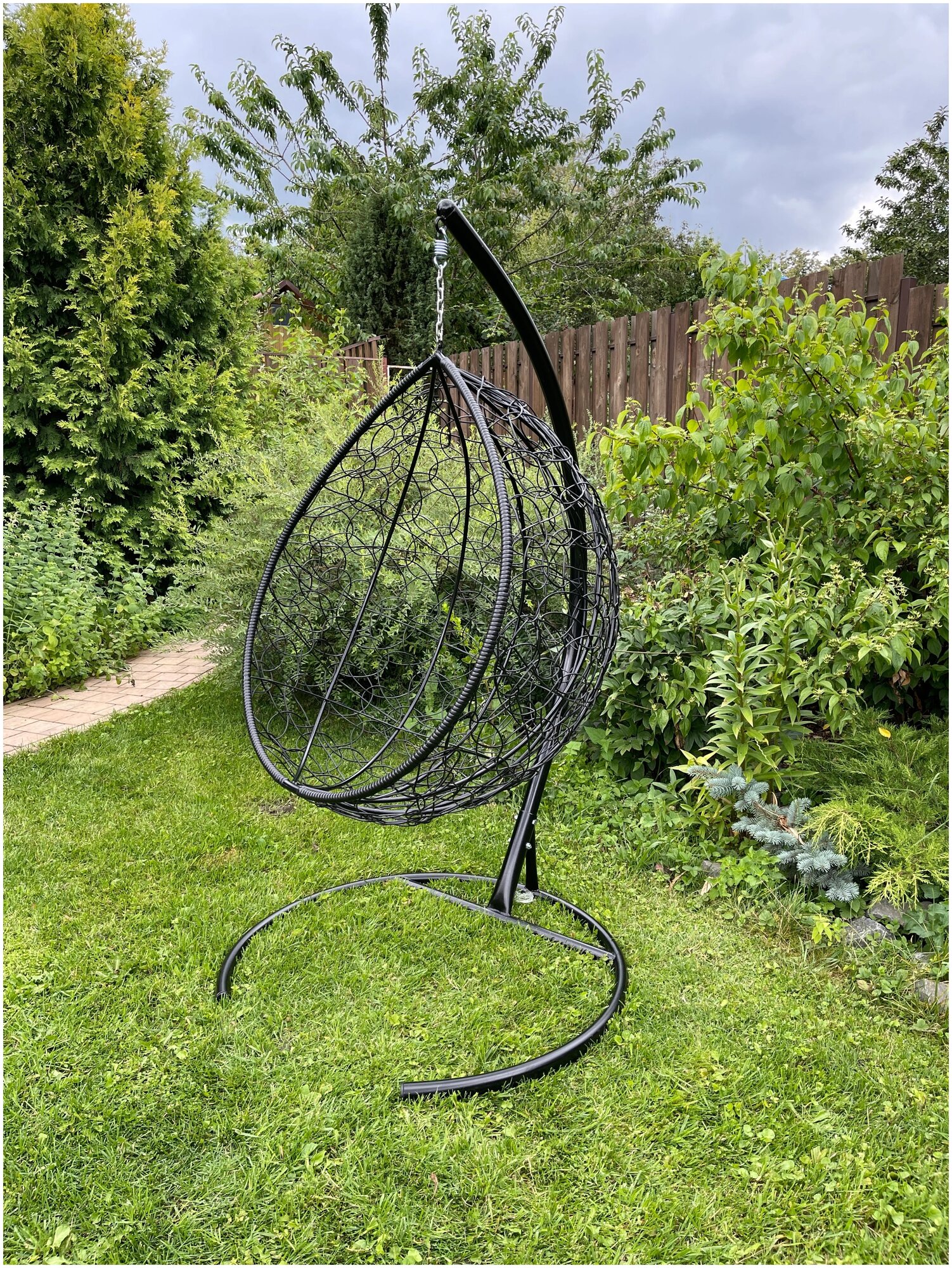 Садовая качель Подвесное кресло-кокон M-GROUP Капля с ротангом, чёрный/красный