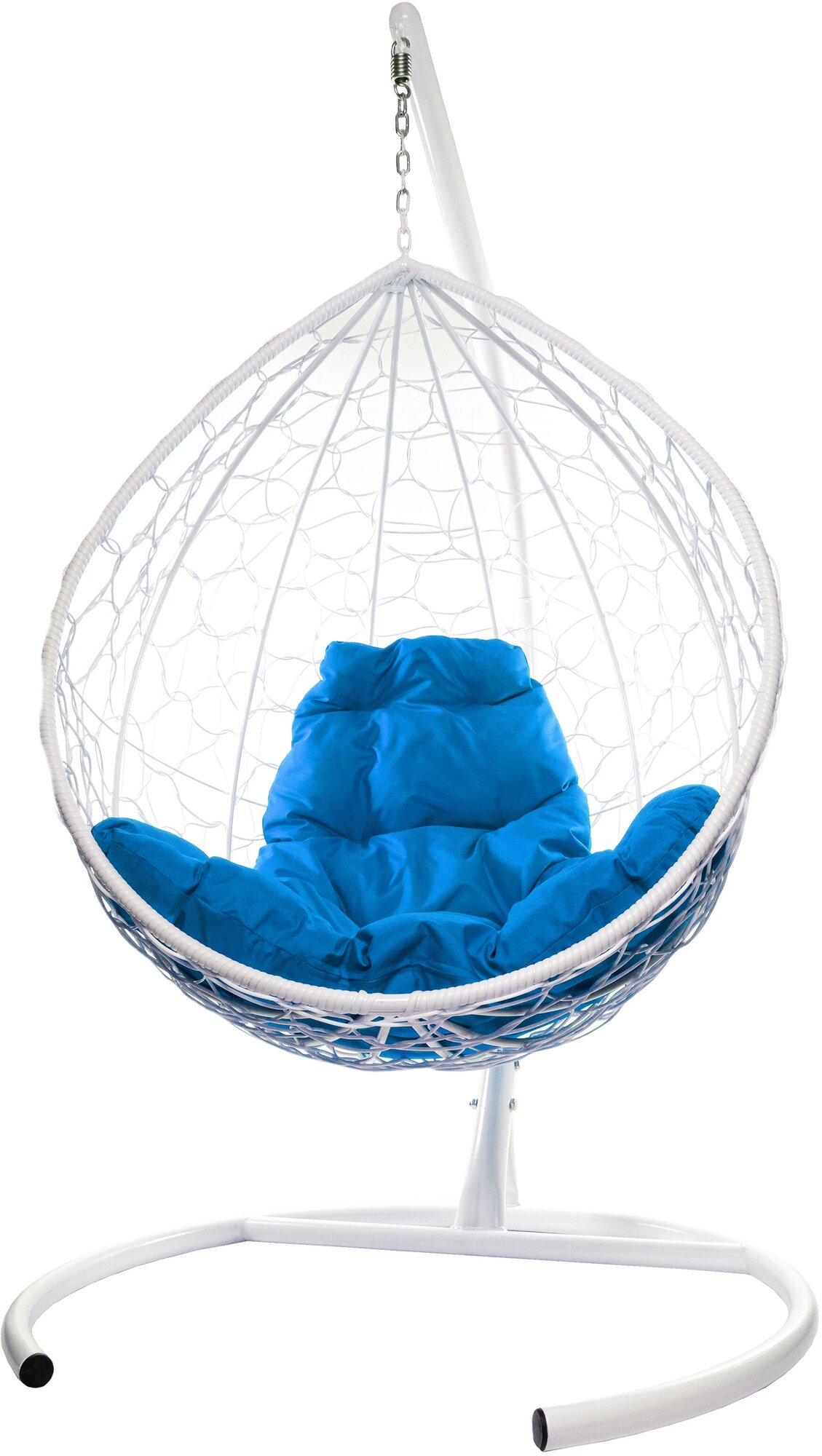 Садовая качель Подвесное кресло «капля» ротанг белое/синяя