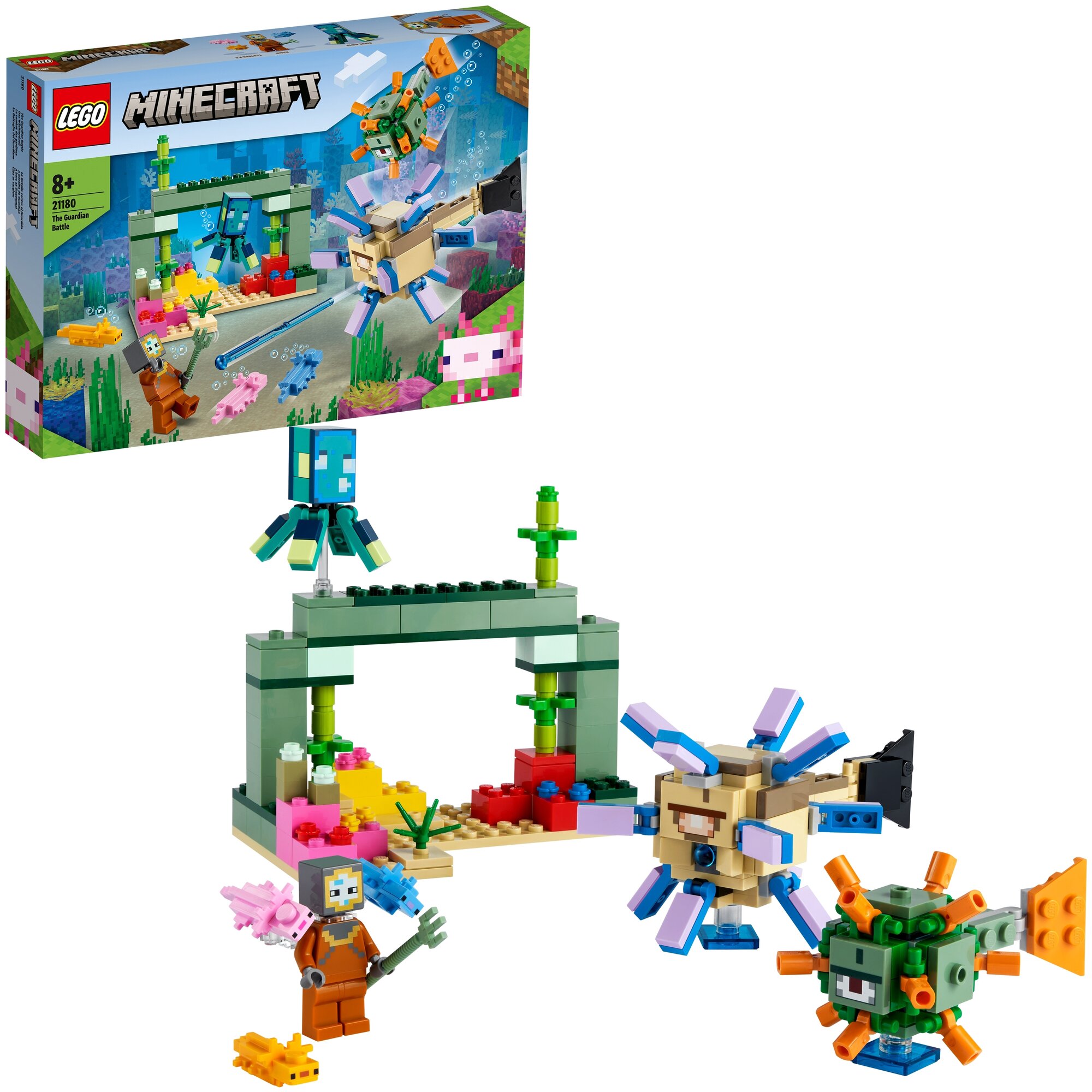 Лучшие цены. «Битва со стражем» LEGO Minecraft (21180) отправляет игроков в возрасте от 8 лет в подводное приключение, где их ждет множество знакомых персонажей и функций из хитовой игры. Океан удовольствия для игроков в Minecraft. В этом увлекательном подводном приключении Minecraft детей ждет множество испытаний. Первым делом они должны построить монумент на красочном коралловом рифе. Там их ждут спрятанные сокровища, а также два знакомых моба из Minecraft: страж и старший страж. Магазины в вашем городе.