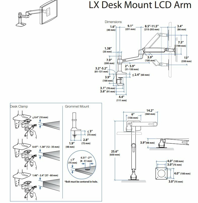 Ergotron LX Desk Monitor Arm Tall Pole