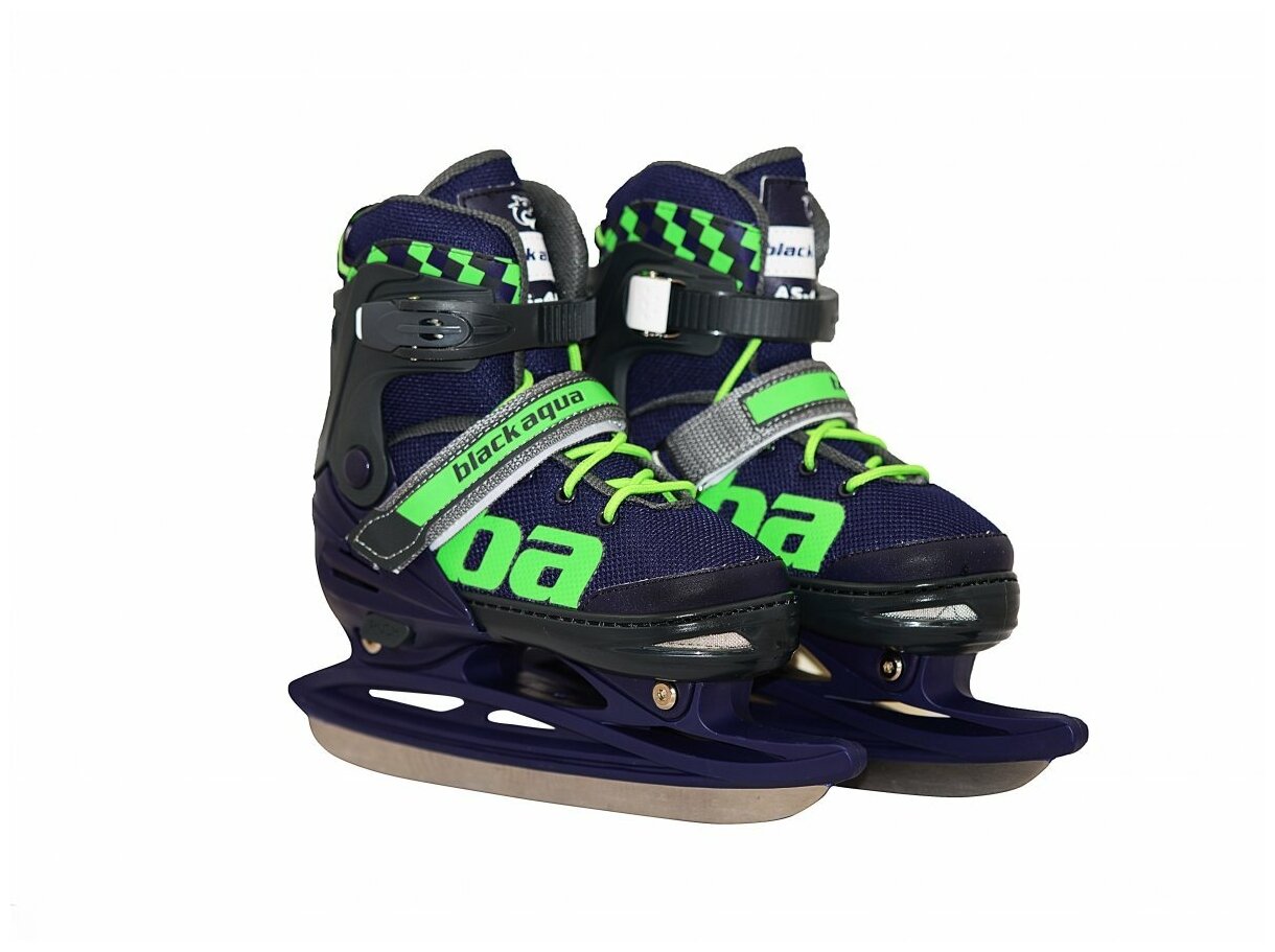 Коньки раздвижные подростковые BlackAqua AS-408 темно-синие/зеленые размер 39-42