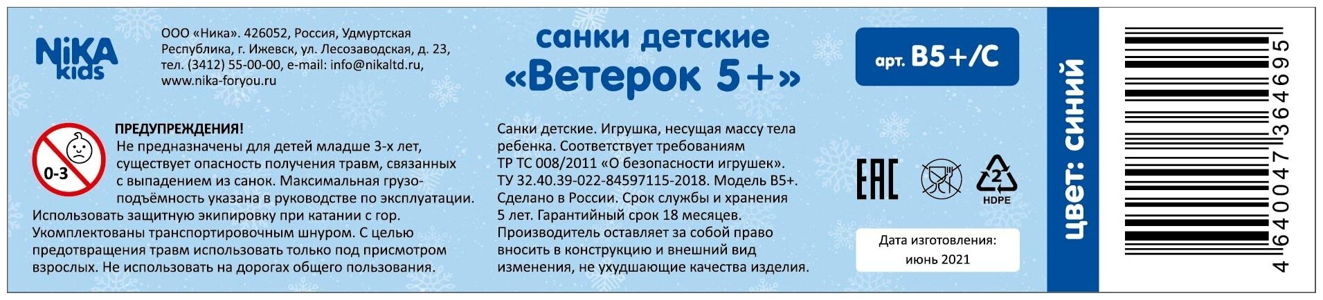 Санки санки NIKA Ветерок 5+ синий В5+/С