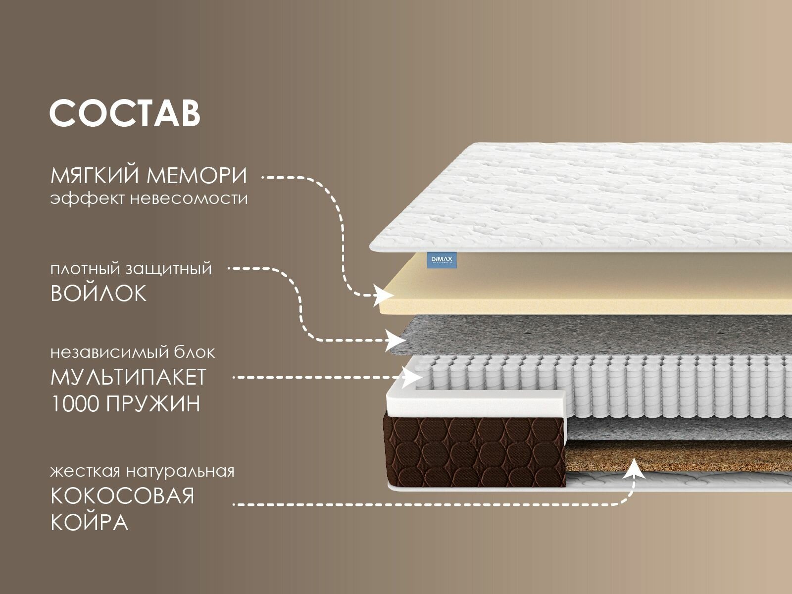Матрас Dimax Мега Мемо Хард 160х200, стандартный 31 127 ₽ Подробнее
