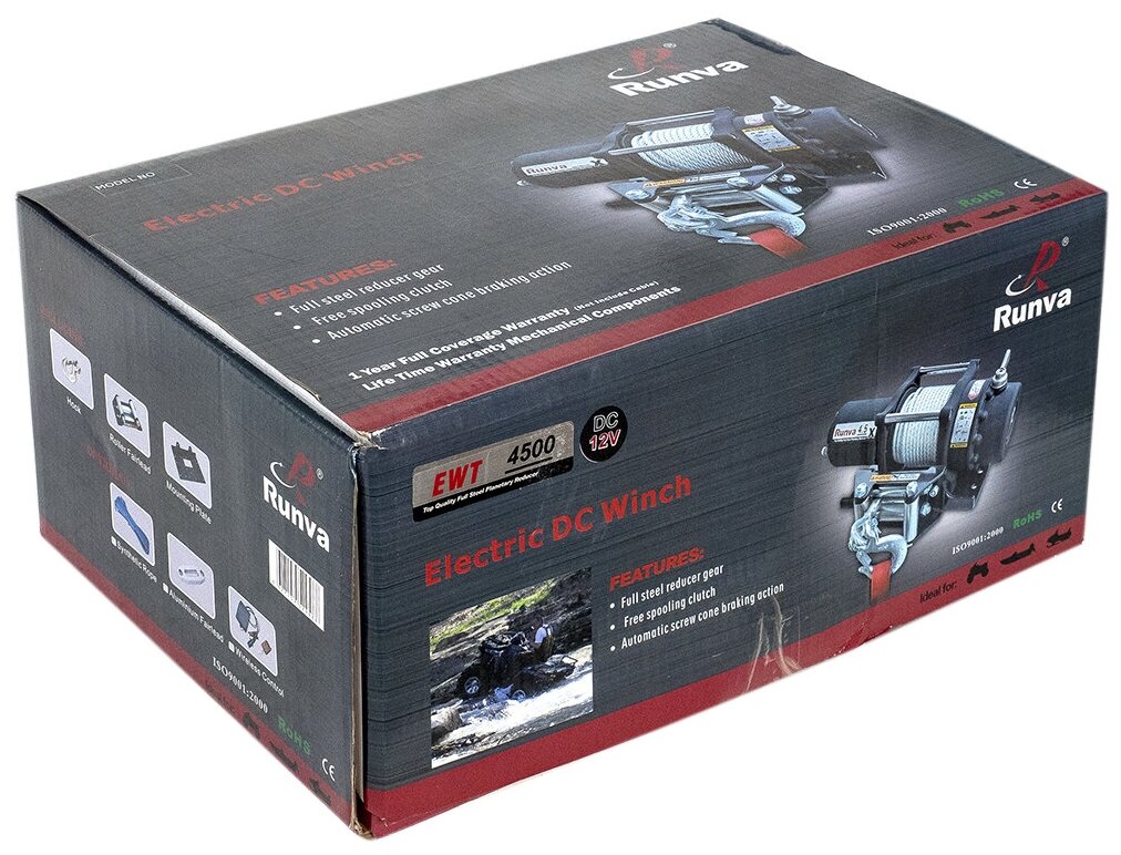 Тали и лебедки Лебёдка электрическая 12V Runva 4500A lbs (синтетический трос)