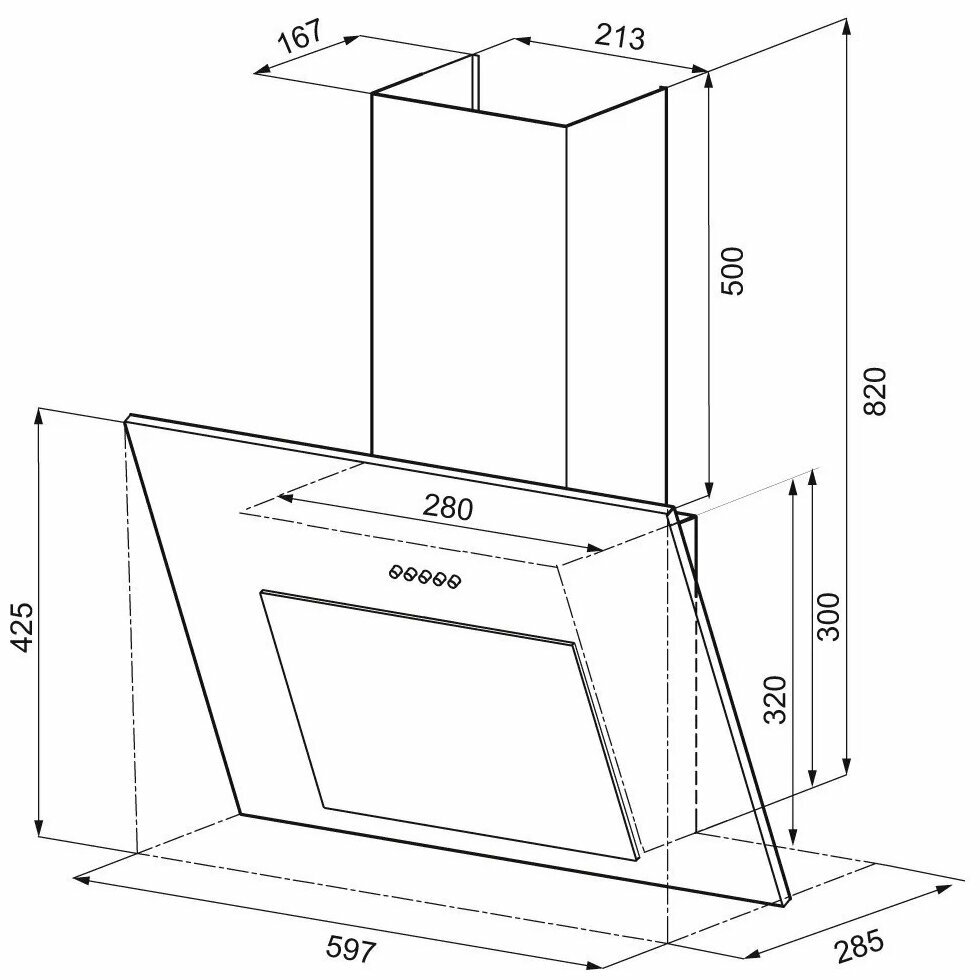Вытяжка каминная Krona Fiona 600 PB черный управление: кнопочное