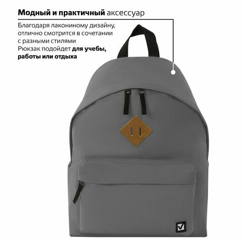 Рюкзак Brauberg , универсальный, сити-формат, один тон, серый, 20 литров, 41х32х14 см