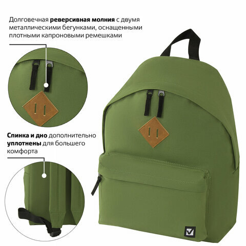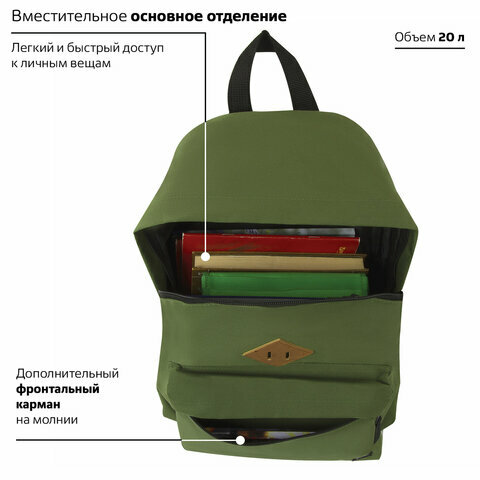 Рюкзак BRAUBERG(брауберг) универсальный, сити-формат, один тон, зеленый, 20 литров, 41*32*14 cм, 225382