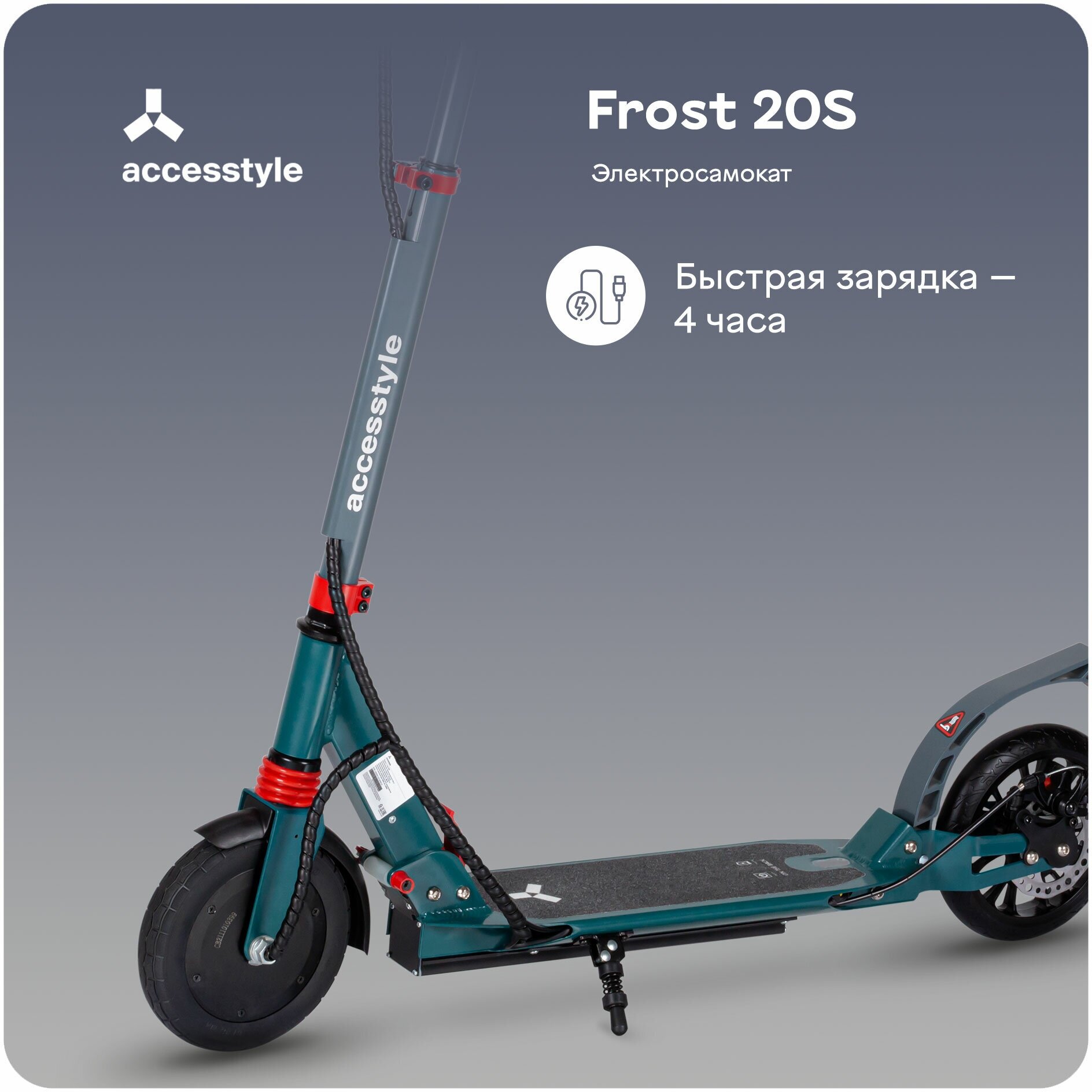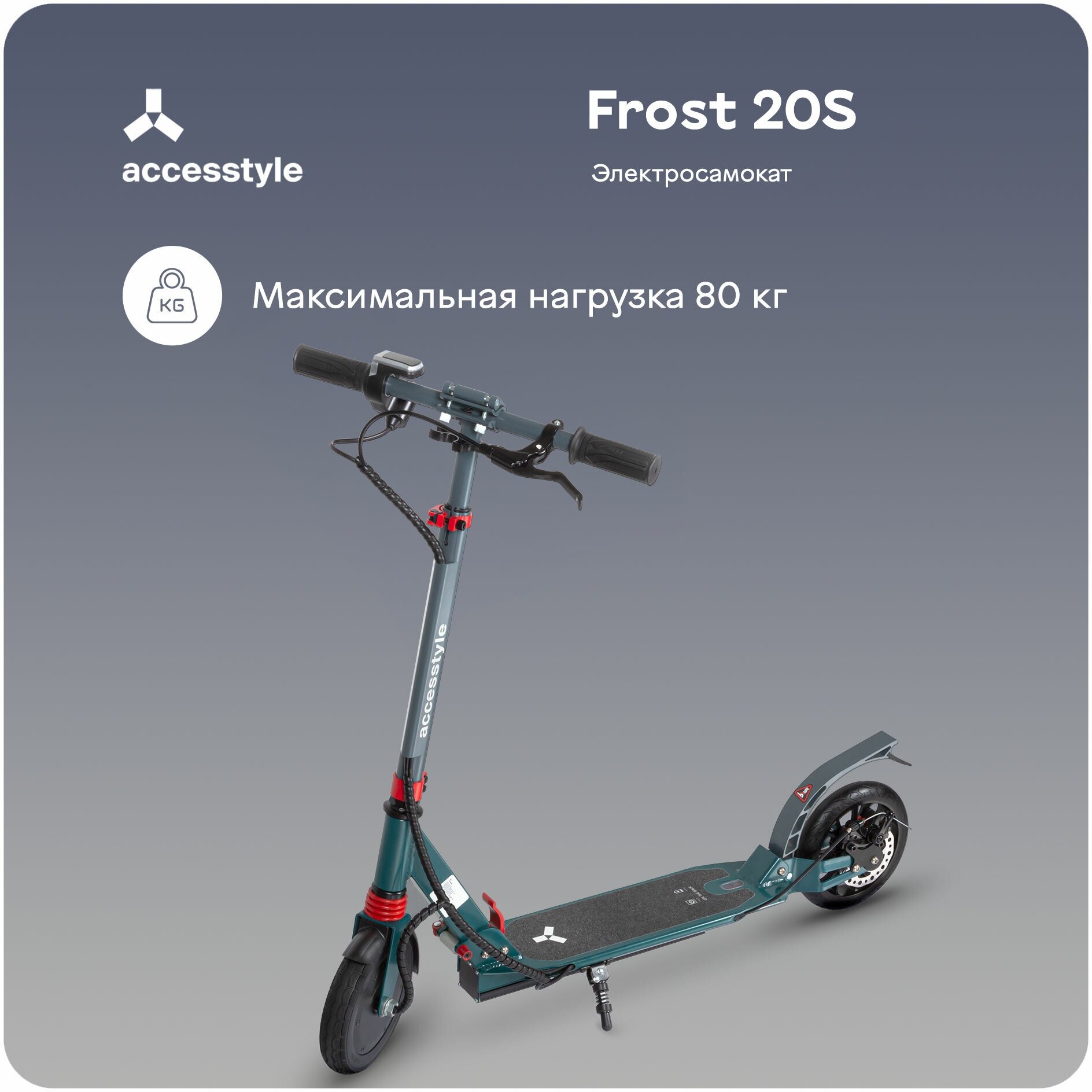 Лучшие цены. Accesstyle Frost 20S — это легкий и маневренный электросамокат. Комфорт во всем Самокат имеет легкую и при этом прочную алюминиевую раму, переднее колесо 8 дюймов, а также удобную подножку для парковки. Кроме того, заднее колесо выполнено из полиуретана, что обеспечит хорошее сцепление с поверхностью и отличную маневренность при использовании. Ручной дисковый тормоз заднего колеса создан для безопасного передвижения по асфальту. Магазины в вашем городе.