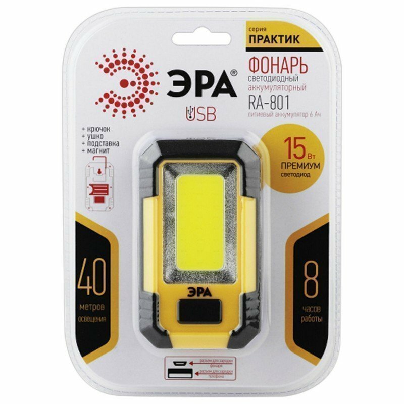 Фонарь RA-801 рабочий "Практик" Акку 15Вт COB powerbank 6А.ч магнит крючок 3 режима ЭРА Б0027824 (1 шт.)