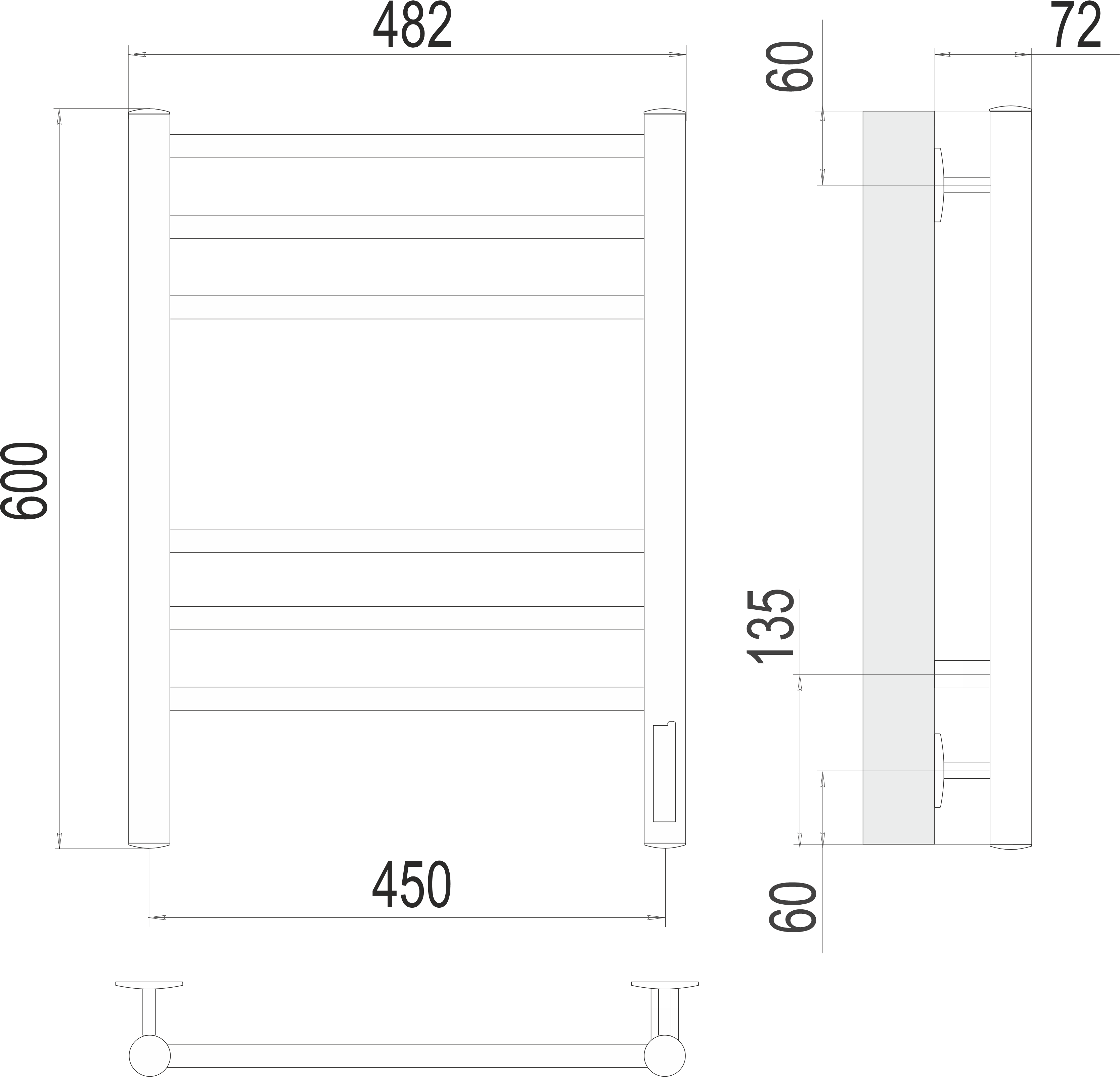 КС Аврора quick touch (черный) электрический полотенцесушитель TERMINUS (482 мм / 600 мм / 450 мм)
