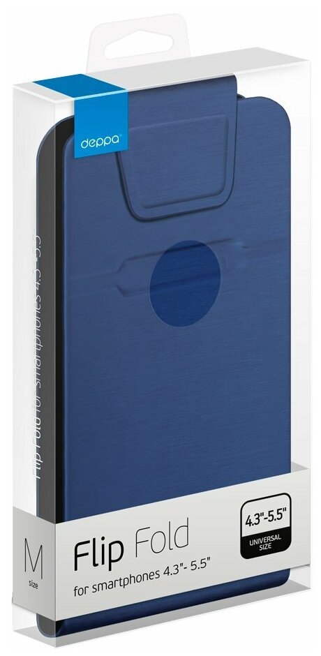 Чехлы для мобильных телефонов Чехол для смартфонов Flip Fold M 4.3''-5.5'', синий, Deppa