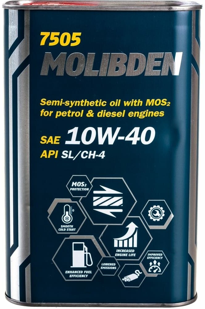 7505-1 MOLIBDEN BENZIN 10W40 1л. API SN/CH-4. Полусинтетическое моторное масло MANNOL MN7505-1