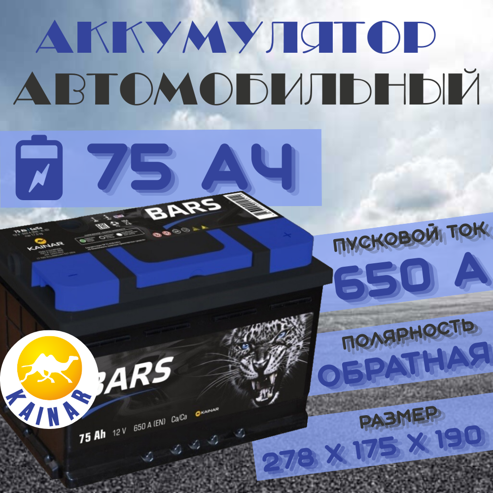 Автоаккумуляторы Аккумулятор BARS 75 Ач обратная полярность