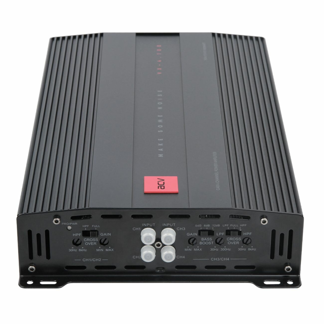 Лучшие цены. ACV VX-4.100 — модель многоканального автомобильного усилителя с четырьмя каналами. Минимальная частота звучания — 10 Гц, максимальная — 30 кГц. Звуковой сигнал подается с показателем коэффициента гармонических искажений в 0,15 %. Соотношение сигнала и шума — 92 дБ. Сопротивление нагрузки — 1 Ом. В одноканальном режиме 4 Ом мощность усилителя звука достигает 350 Вт. Функционирует фильтр низких частот — 30-300 Гц. Усилитель оснащен четырьмя входами RCA аудио. В комплектацию входят предохранители 2х30 А. Магазины в вашем городе.