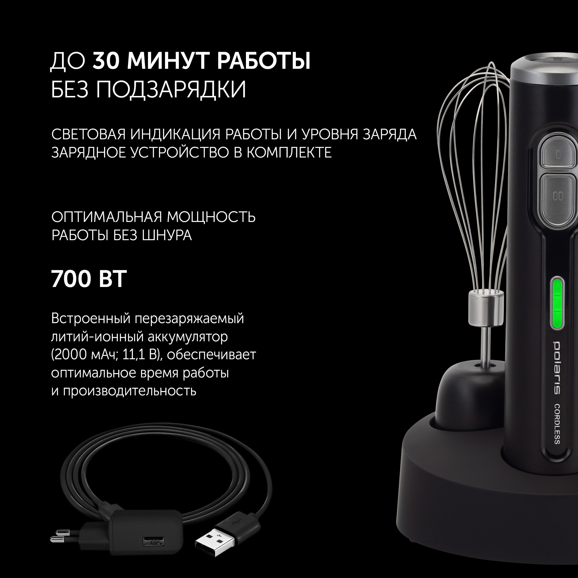 Блендер Polaris PHB 0746 CordLess, погружной, черный